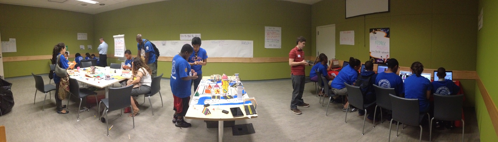 I helped working the event in the same way that I did for the Reverse Field Trips. I helped kids with testing circuits, making up ideas, taping, cutting, making websites. I basically floated around wherever I was needed. I also took a bunch of photos on the new tablets that Hive received.