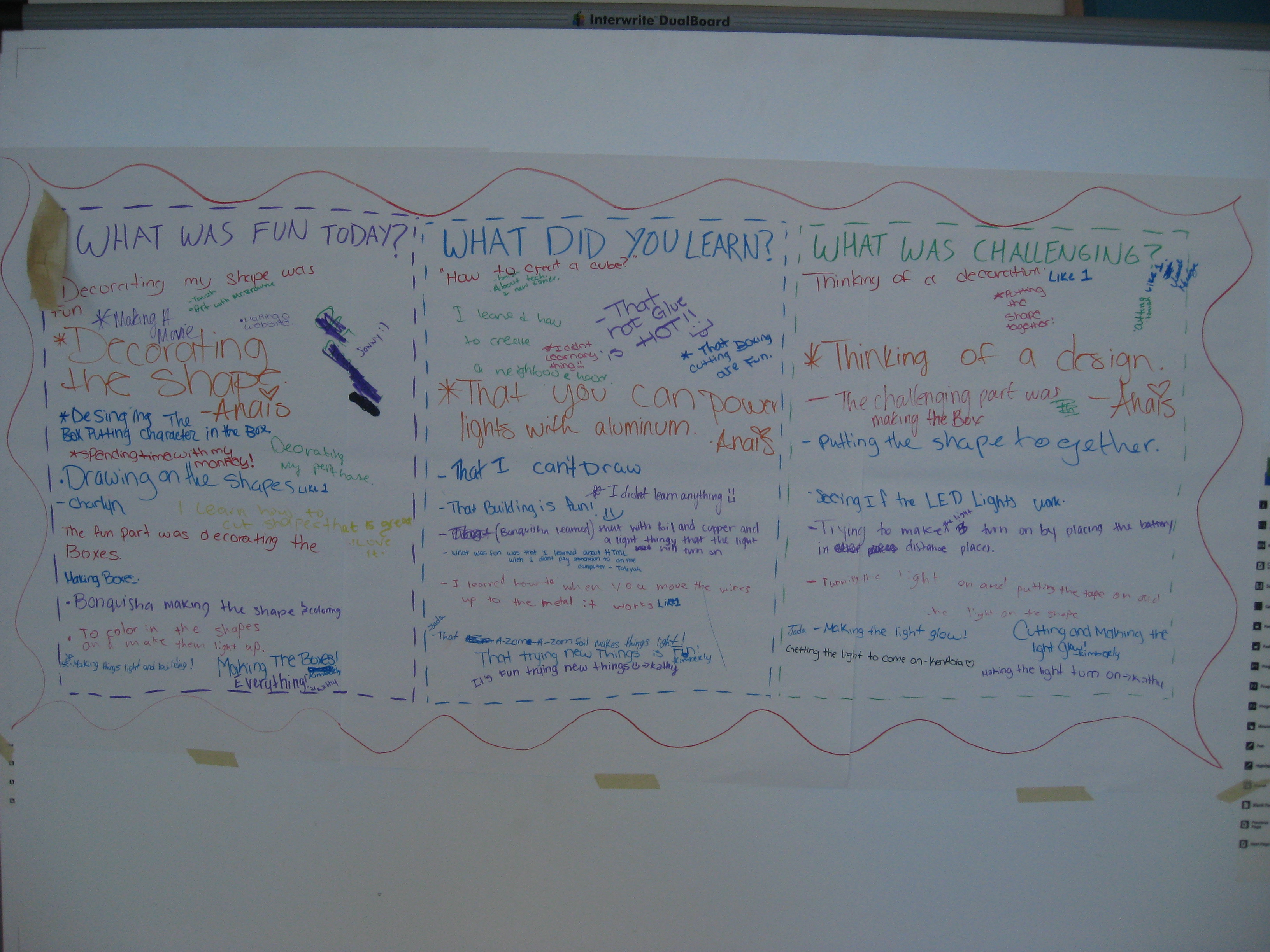 Overall I think that the Reverse Field Trips were a great success! Hopefully we got some kids inspired about building, creating, electronics, design and the web. It was really neat seeing the progression of our ideas as a team and seeing how the final trip was compared to the first one.